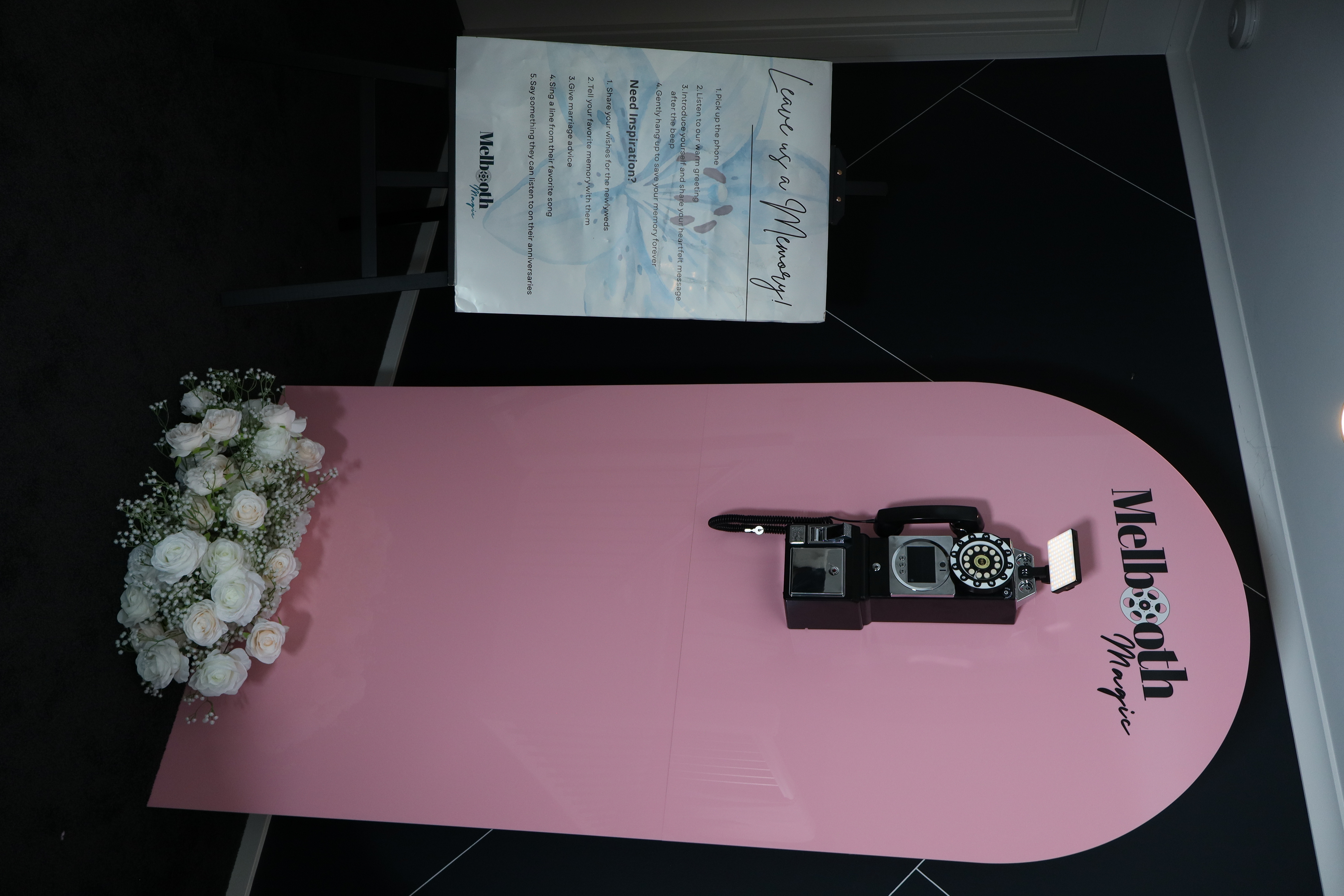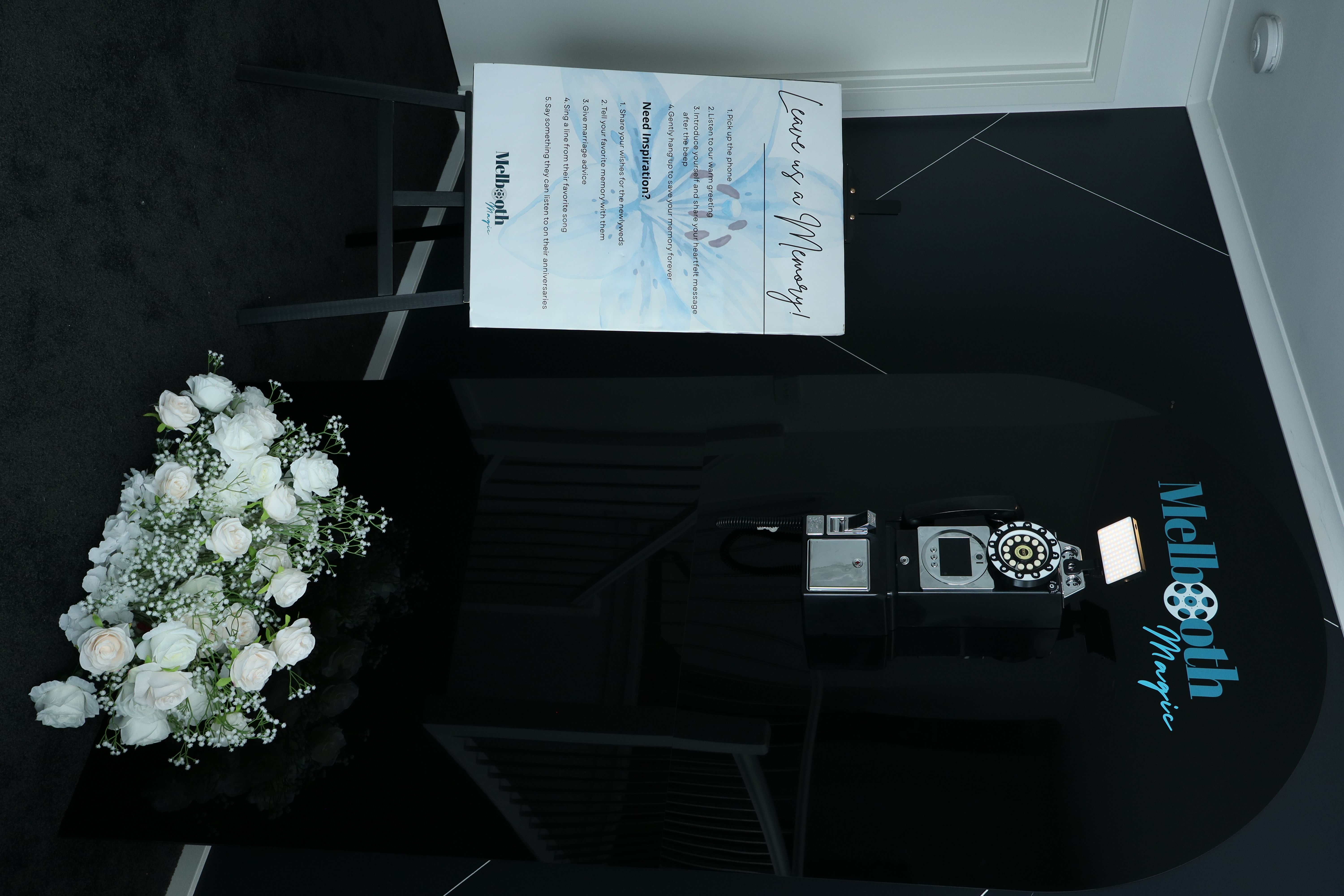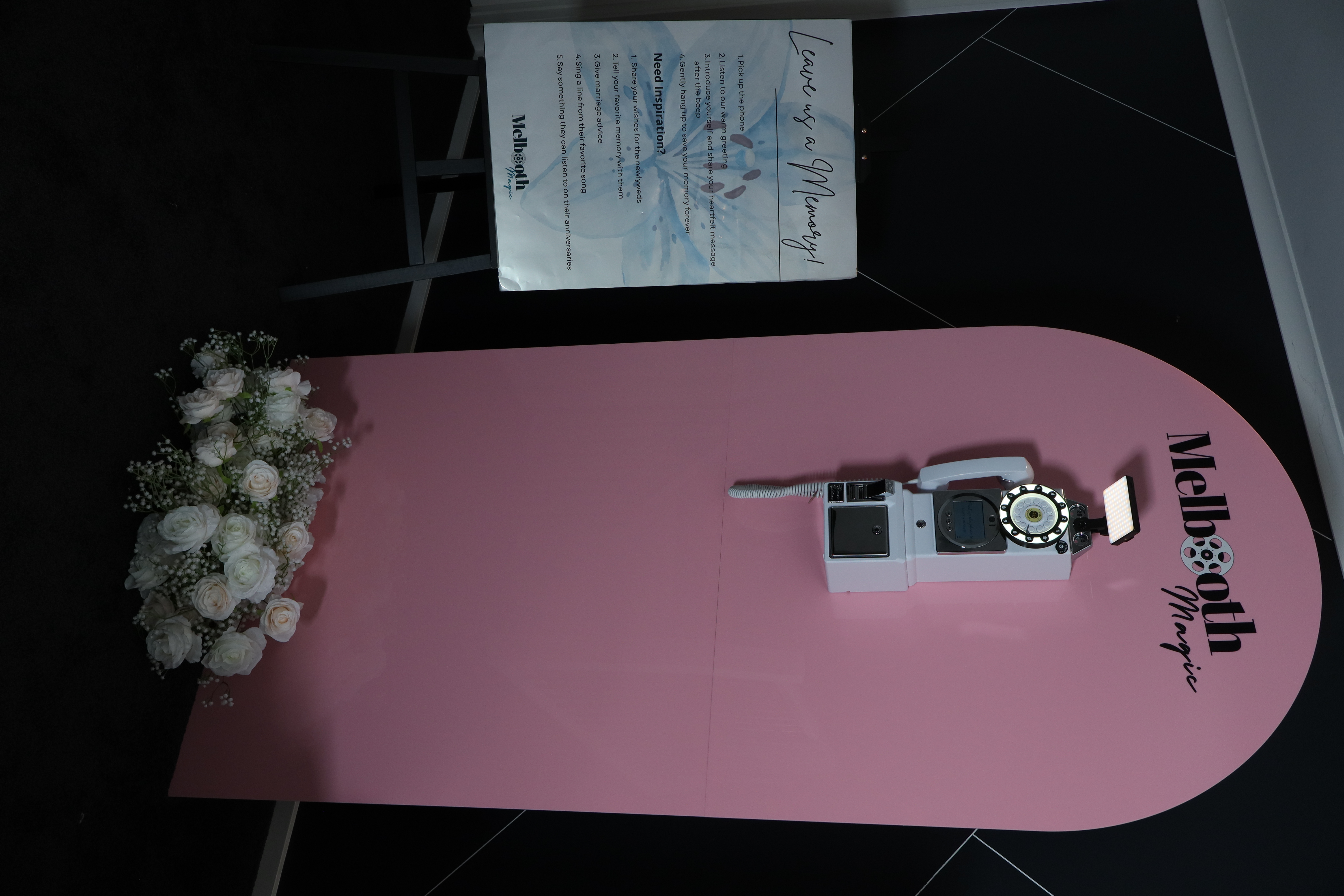 • The Setup Kit: Includes a professional LED ring light and elegant "How-To" signage to guide your guests.
