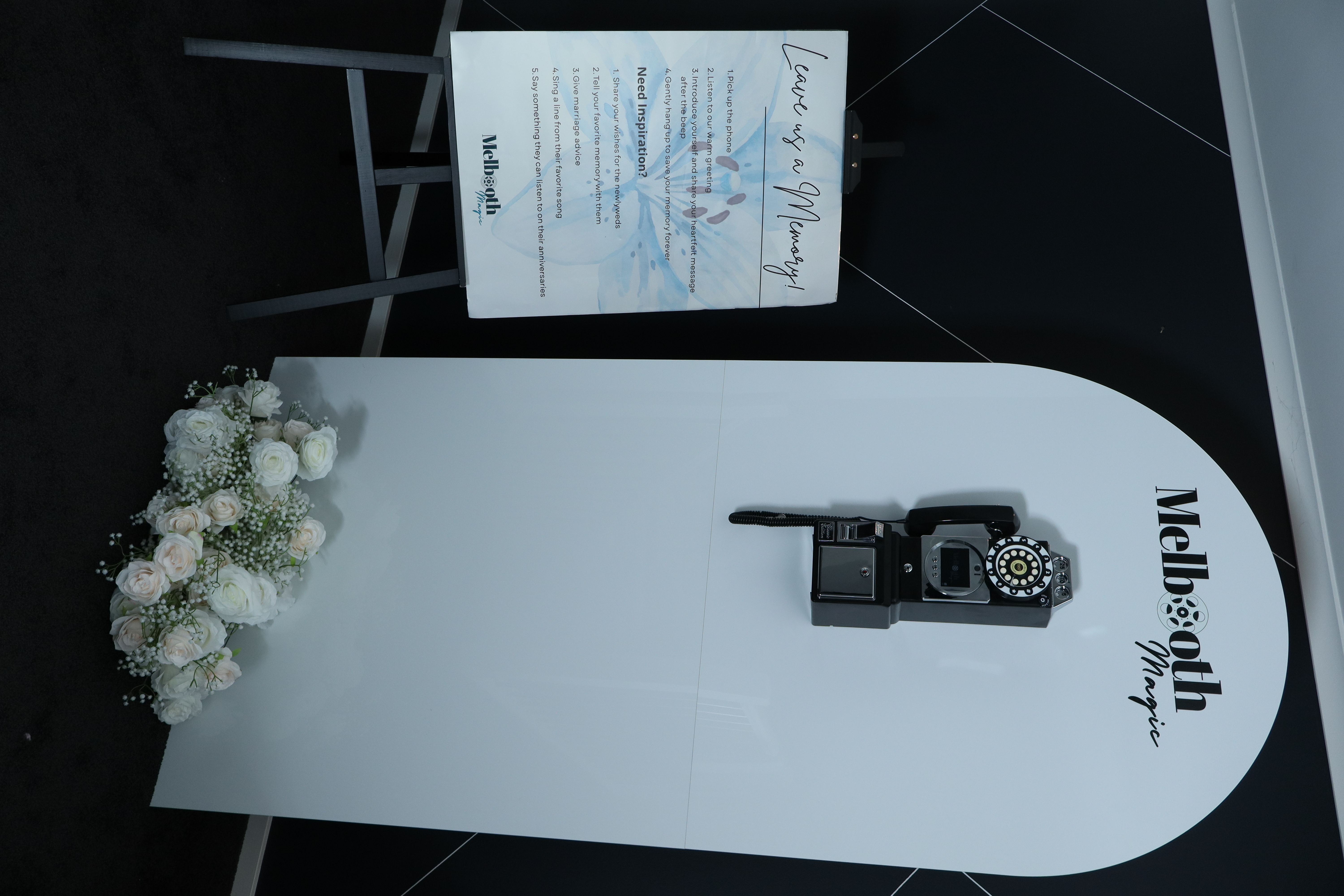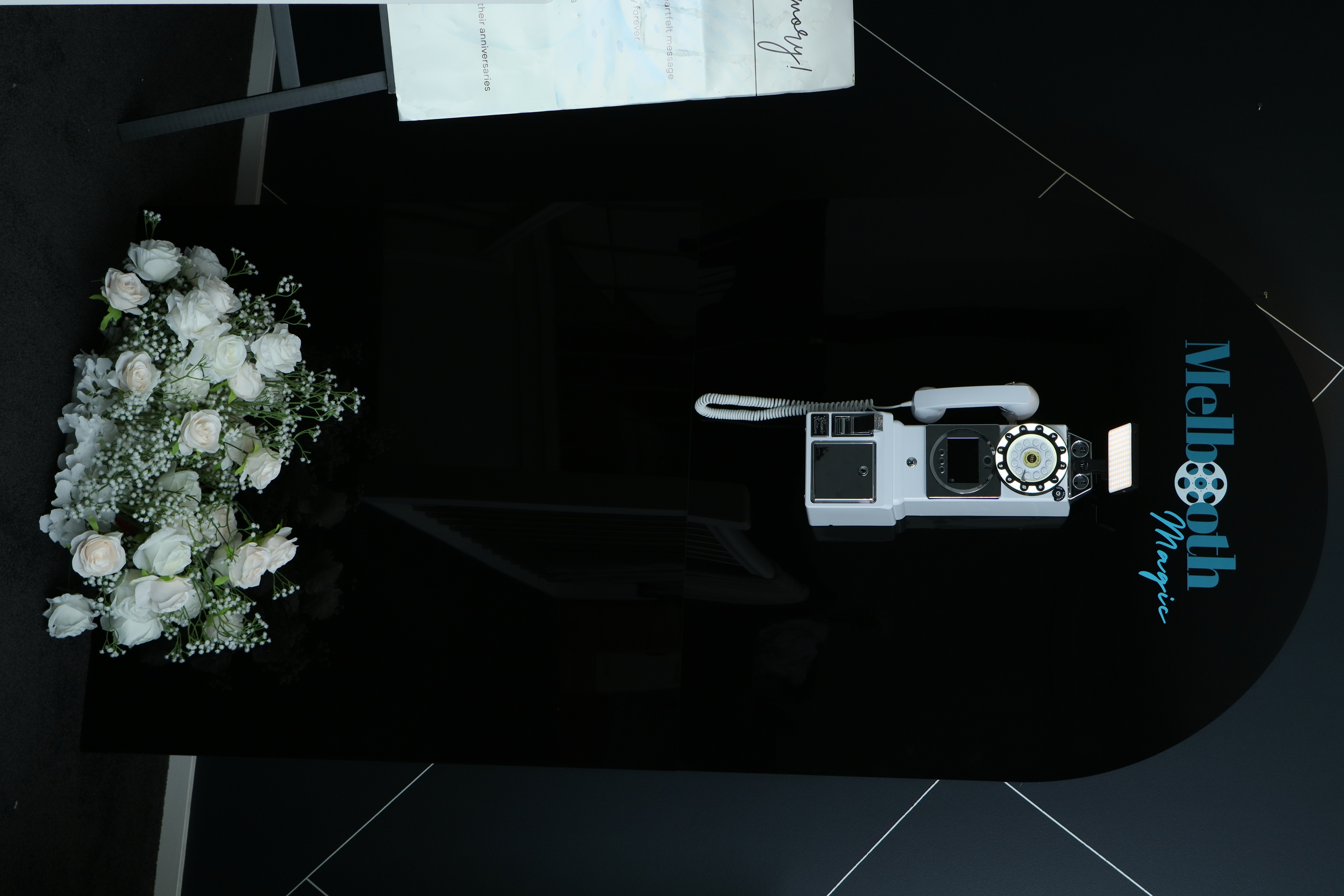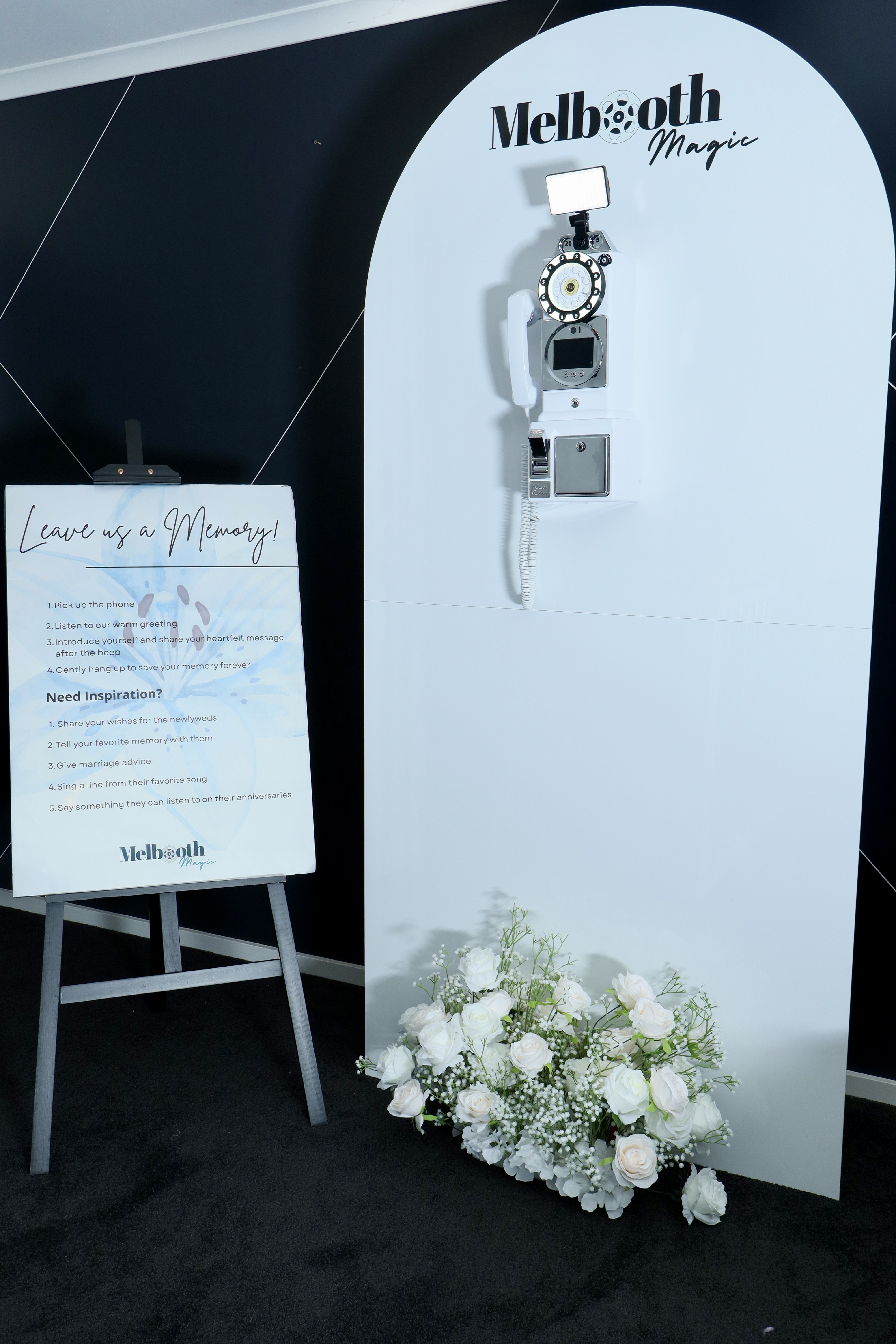 • The Setup Kit: Includes a professional LED ring light and elegant "How-To" signage to guide your guests.